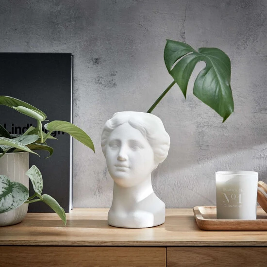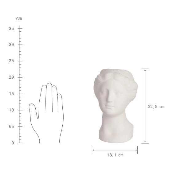 Sagenhaft schön: Mit ihrer Darstellung der griechischen Göttin der Liebe und Schönheit zieht die Aphrodite Keramik Vase in Weiß alle Blicke auf sich. Ein echtes Highlight ist dabei die raffinierte Verbindung von Büste und Vase, die dem klassisch-antiken Look des Frauenkopfes einen modernen Twist verleiht – und mit (Trocken-)Blumen Ihrer Wahl eine extravagante Dekoration ergibt.