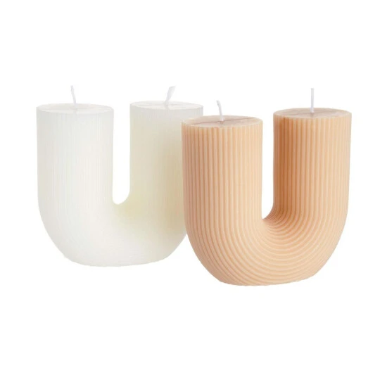Doppelt brennt besser: Die Arc Kerze Bogen mit 2 Dochten zünden Sie an beiden Enden an, so dass der Kerzenschein paarweise funkelt. Die trendige Kerze ist aus Paraffin und Sojawachs gefertigt, letzeres lässt die Kerze langsamer und rußfreier brennen. In Creme und in Beige erhältlich, ideal auch zum Kombinieren.