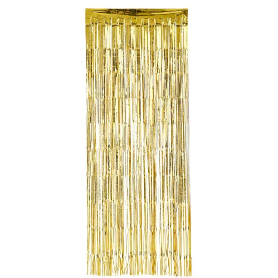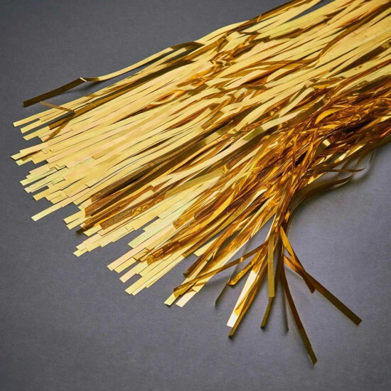Mit dem Banner Day Fransenvorhang in Gold sorgen Sie dafür, dass Geburtstags-Kinder, Hochzeits-Paare, Uni-Absolventen, Jubilare und andere gefeierte Hauptdarsteller ihren großen Auftritt haben. Einfach im Türrahmen aufhängen – oder als funky Party-Deko verwenden.