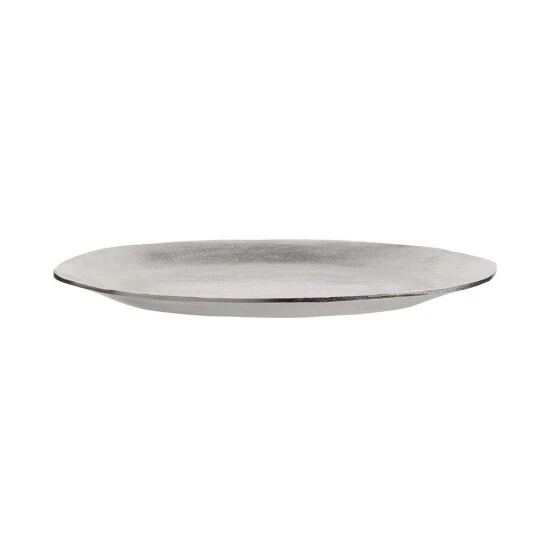 Aus einem früheren Jahrhundert könnte der Banquet-Teller Ø 32 cm mit seiner glänzenden und strukturierten Oberfläche stammen. Und genau wie damals verschönert er die Tafel und den Raum mit seiner organischen Form. Aus vernickeltem Aluminium, mit Softpads an der Unterseite.