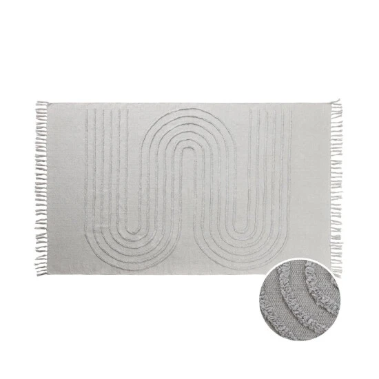 Denn dieser hellgraue Teppich aus reiner Baumwolle verbreitet Wohnlichkeit mit angesagten Fransen und einem harmonischen Wellenmotiv, das sich in höherem Flor dekorativ abhebt. Das fühlt sich beim Barfußlaufen besonders angenehm an – und sorgt optisch für einen unaufdringlichen, aber raffinierten Effekt. Passender Baumwolle Way Läufer erhältlich.