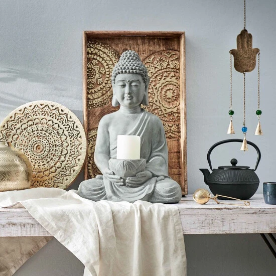 Auslauf ⭐ BUTLERS BUDDHA Statue Mit Kerzenteller Höhe 46cm 🔥