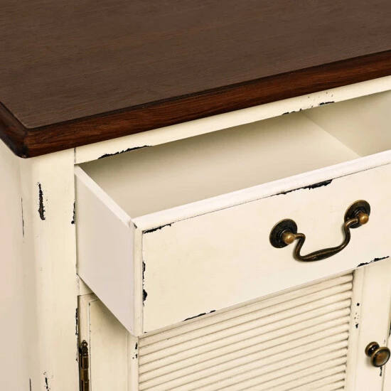 Inspiriert vom amerikanischen Landhausstil der 60er Jahre: Der Cabotte Cove Nachttisch mit Schublade und Tür verbreitet mit seinem Used-Look familiäre Gemütlichkeit. Farblich kombiniert er Paulowniaholz und Eschenholz in Creme mit einer MDF-Platte in braunem Esche-Furnier. Passend dazu sind die Metallbeschläge im Vintagestil gehalten, und auch der Kassetteneinsatz im Rillendekor harmoniert perfekt. Alles ganz genau so, wie man es schon früher in den kleinen, verschlafenen Ort irgendwo im Nirgendwo der USA geliebt hat. Zum Kombinieren sind weitere Möbelstücke aus der Cabotte Cove Serie erhältlich.