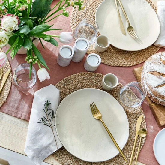 Die limitierte Geschirrserie Fleur mit Crackle-Glasur: Ein guter Morgen beginnt mit einem schön gedeckten Tisch, auf dem Ihnen der Fleur Frühstücksteller im 4er-Set ein erstes Lächeln ins Gesicht zaubert. Denn dieser organisch geformte Steinzeug-Teller verbindet ein zartes Gräser- bzw. Blumendesign mit einem feinen Craquelé. Leicht verspielt wirkt dieses Design, das wunderbar mit dem modernen Landhausstil und allen natürlichen Looks harmoniert. Die beige Geschirrserie Fleur wird durch passende Espressotassen und Dinnerteller komplementiert.
