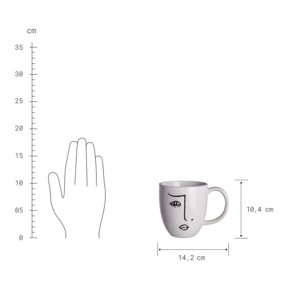 Trendig trinken: Die Line Art Tasse mit Gesicht aus Steinzeug greift das angesagte Line Art Design auf. Dank klassischem Schwarz-Weiß und minimalistischem Look ist die moderne Tasse leicht zu kombinieren, zum Beispiel mit Geschirr mit reaktiver Glasur. So bringen Sie ganz einfach immer wieder Abwechslung auf den gedeckten Tisch.