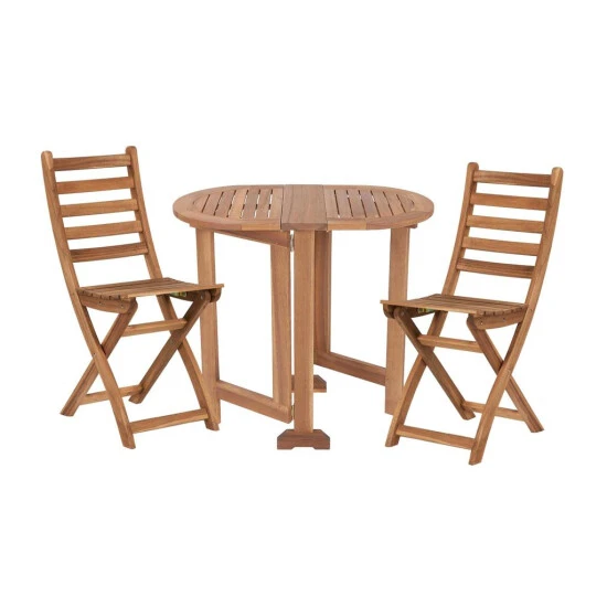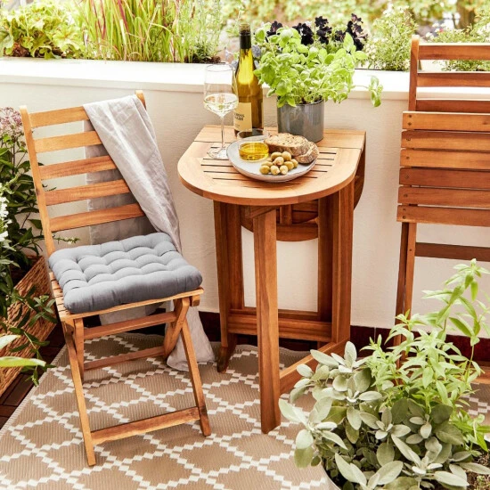 Wenn Sie Stellfläche brauchen und z.B. zu Zweit frühstücken möchten, klappen Sie dieses Outdoormöbel vollständig aus. Wenn Gäste kommen und es enger wird, nutzen Sie einfach nur eine Seite, oder Sie verstauen den Tisch und die Stühle platzsparend am Rande.