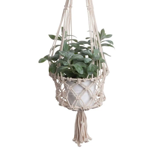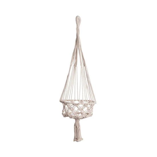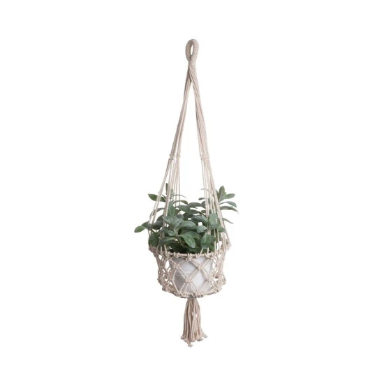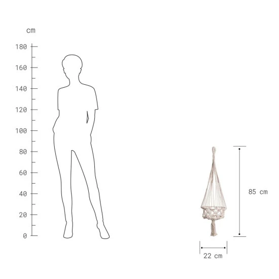 Ihr Herz hängt an dekorativen Wohnaccessoires aus Macramé? Dann hängt sicher bald die handgeknüpfte Macramé Blumenampel in Ihrem Zuhause, geschmückt mit einer üppig wuchernden Grünpflanze oder einem blühenden Topf. Mit der Blumenampel aus naturfarbener Baumwolle setzen Sie wohnliche Akzente z.B. über Beistelltischen oder beleben damit unauffällige Raumecken. Auch als Fenster-Dekoration ist die Blumenampel ein echter Hingucker.