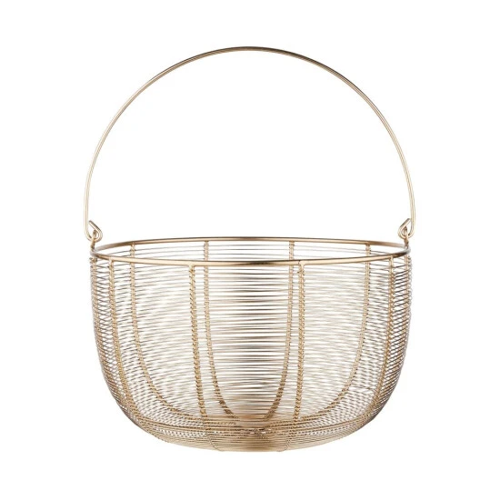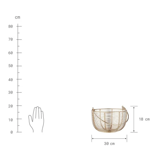 Eine hübsche Ergänzung für Ihr liebevoll gestaltetes Interieur ist der runde Morgan Korb mit Henkel aus Metall in Gold. Der Metallkorb lässt sich dekorativ inszenieren, z.B. als saisonale Tischdeko, oder Sie nutzen ihn zum Aufbewahren von Kleinigkeiten, z.B. Briefe, Zettel oder Ladegeräte. In einer weiteren Größe erhältlich, ideal auch zum Kombinieren.