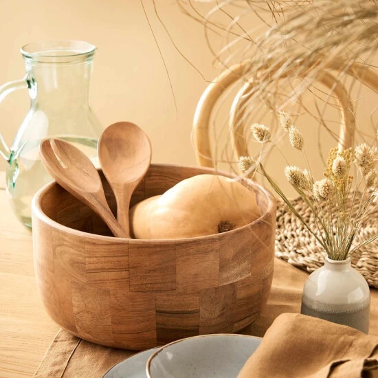 Ein echtes Schmuckstück für den gedeckten Tisch: Die Pure Kitchen Schale aus edlem Akazienholz macht selbst einen schnell mit Öl und Essig angemachten Blattsalat zum Highlight beim Essen. Doch auch der Obstsalat zum Dessert oder der Gemüsesalat zum Grillen kommen in der Pure Kitchen Salatschale dekorativ zur Geltung.