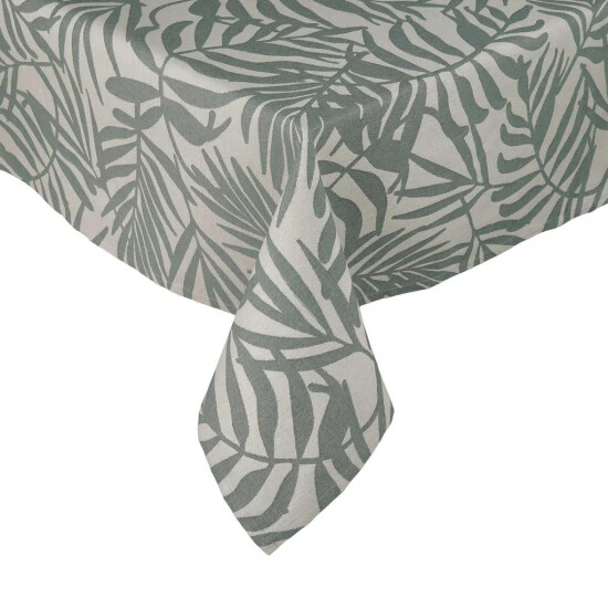 Exotische Palmblätter schmücken die Secret Island Tischdecke 300 x 160 cm aus 100 % Baumwolle. Ihre neutrale Farbgebung in Grün und der moderne Look machen diese Tischwäsche besonders kombistark und alltagstauglich. So passt die Tischdecke ebenso zum sommerlichen Abendessen auf Balkon oder Terrasse wie zum festlichen Sonntagsfrühstück mit Gästen. Tischdecke in weiteren Größen sowie passender Tischläufer und passende Stoffserviette erhältlich.