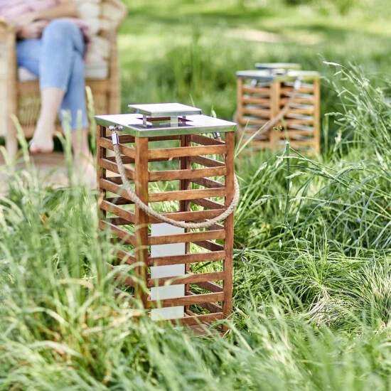 Geradlinig und puristisch wird die hochwertige Shore Laterne aus echtem Mangoholz und robustem Stahl zum neuen Highlight Ihrer Deko, zum Beispiel indoor auf der Fensterbank oder outdoor auf Balkon bzw. Terrasse. Durch das offene grafische Design kann das warme Kerzenlicht den natürlichen Holzton der Laterne besonders schön zur Geltung bringen, und so entsteht eine harmonische Lichtstimmung. In einer weiteren Variante erhältlich, ideal auch zum Kombinieren.