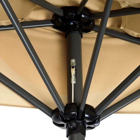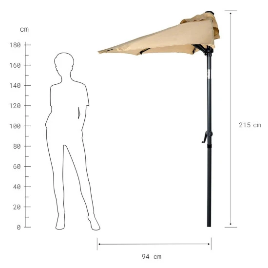 Sie spannen den halbrunden Siesta Sonnenschirm mit Polyesterbezug (UV-Standard 801) auf, sobald die Sonne hoch am Himmel steht. Einfach bei Bedarf kippen – und schon gönnen Sie sich eine kleine, erholsame Siesta im Schatten.