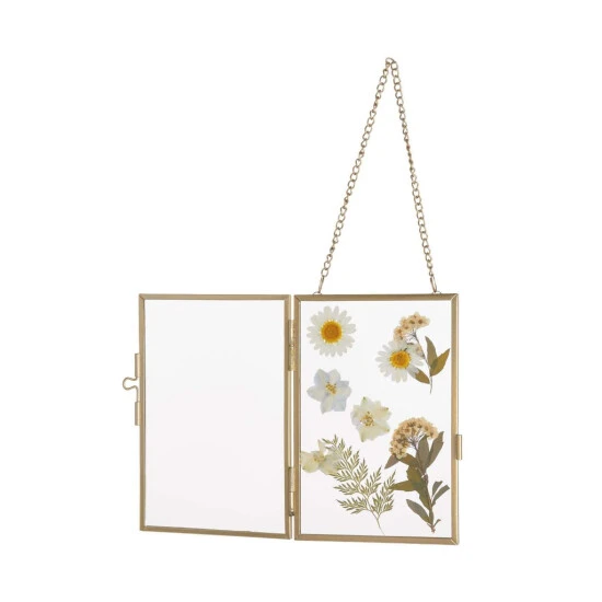 Für den natürlich floralen Look in Ihrem Zuhause blüht Ihnen jetzt etwas Besonderes: der True Bloom Bilderrahmen aus Metall in Gold mit echten Trockenblumen hinter Glas. Dieser hübsche Bilderrahmen mit Kette zum Aufhängen erinnert an eine nostalgische Schatulle oder einen historischen Schaukasten, und so bringt er neben den Blumen noch ein bisschen Retro-Charme mit. In einer weiteren Größe erhältlich, ideal auch zum Kombinieren.
